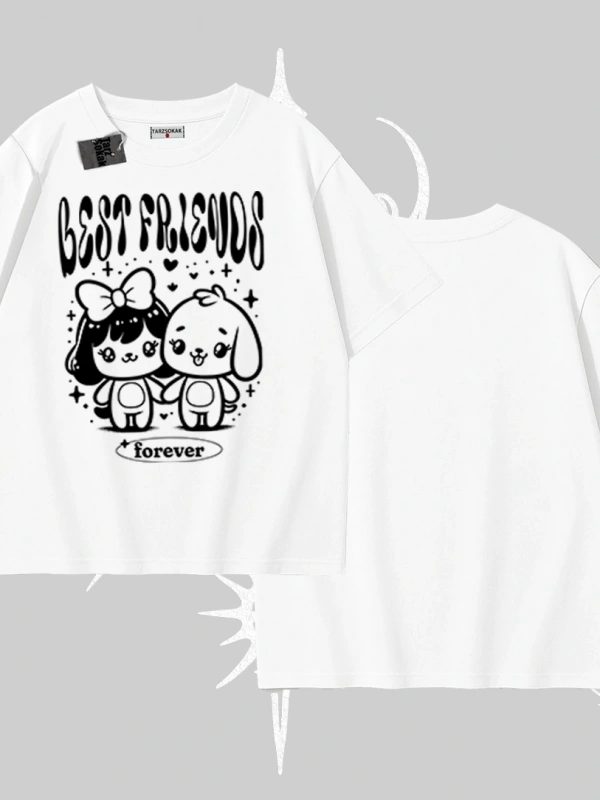Oversize Tshirt Best Friends Forever Baskılı Sevimli Tasarım