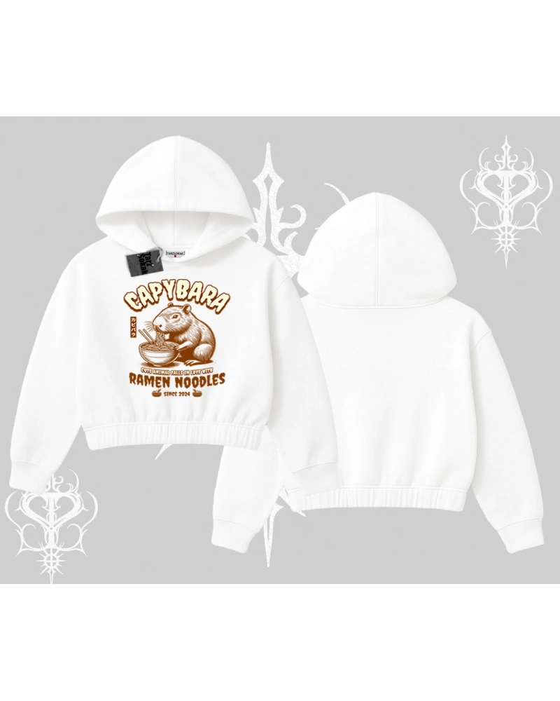 Kapşonlu Crop Sweatshirt Cute Capybara Enjoying Ramen Noodles Artwork modeli; sokak modası, günlük kullanım ve trend kombinler için ideal yapısıyla Tarzsokak’ta uygun fiyat ve hızlı kargo avantajıyla sunulmaktadır.