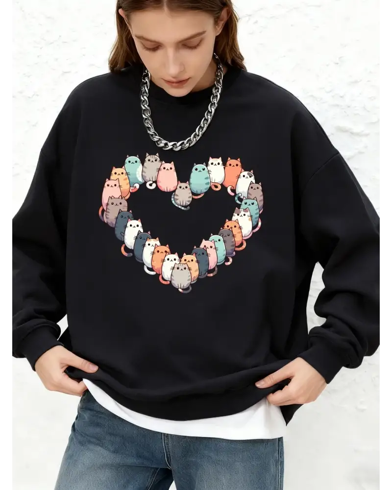 Kediler Kalp Baskılı Kapüşonlu Üst Bayan Basic Jogger Sıcak Kazak Kışlık Yuvarlak Yaka Oversi, Tarzsokak kalitesiyle üretilmiş modern streetwear ürünüdür. streetwear giyim, oversize giyim, kadın giyim, trend moda kategorisinde öne çıkan bu model; rahat kalıbı, kaliteli kumaşı ve uzun ömürlü baskısıyla fark yaratır. Günlük kombinlerde stilinizi yansıtırken maksimum konfor sağlar. Hemen sipariş ver, uygun fiyat ve hızlı kargo avantajını yakala.