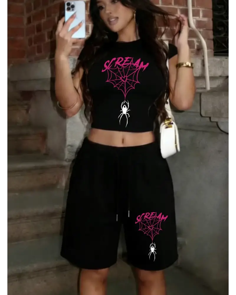 Pembe Scream Spider Baskılı Babby TeeT-Shirt Pantolon Yaz İki Parçalı Set Üstleri Şort Sportif Bü kaliteli malzeme ve konforlu kullanım sunan bir üründür. Günlük kullanım için ideal olup uygun fiyat ve hızlı kargo avantajıyla sunulmaktadır.