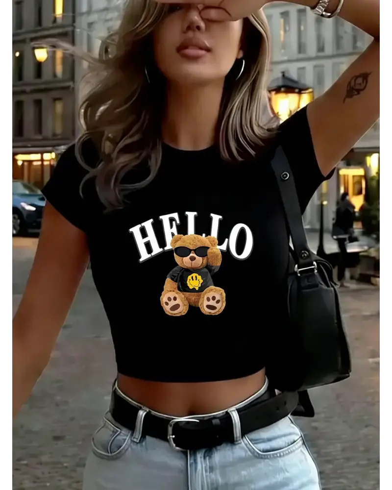 Sevimli Ayı Seni Merhaba Dedi Baskılı Kadın Babby TeeTişörtleri Yazlık İnce O-Yaka Üstler Yumuşak kaliteli malzeme ve konforlu kullanım sunan bir üründür. Günlük kullanım için ideal olup uygun fiyat ve hızlı kargo avantajıyla sunulmaktadır.