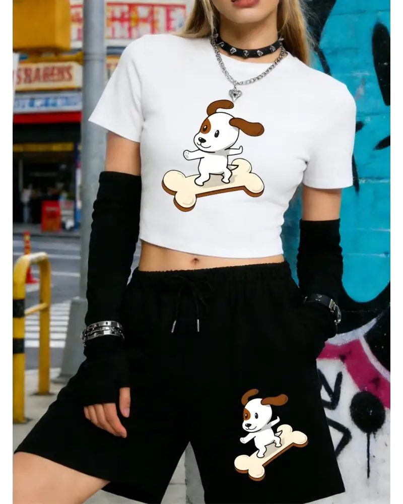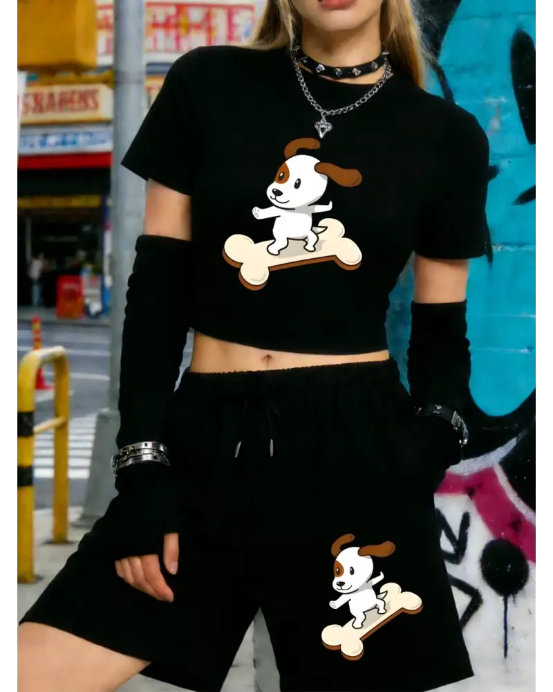 Sıcak Tatlı Çizgi Film Köpek Baskılı Babby TeeTişört Şort Kadın Yazlık İki Parça Takım Diz Boyu P kaliteli malzeme ve konforlu kullanım sunan bir üründür. Günlük kullanım için ideal olup uygun fiyat ve hızlı kargo avantajıyla sunulmaktadır.