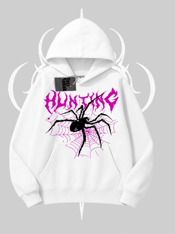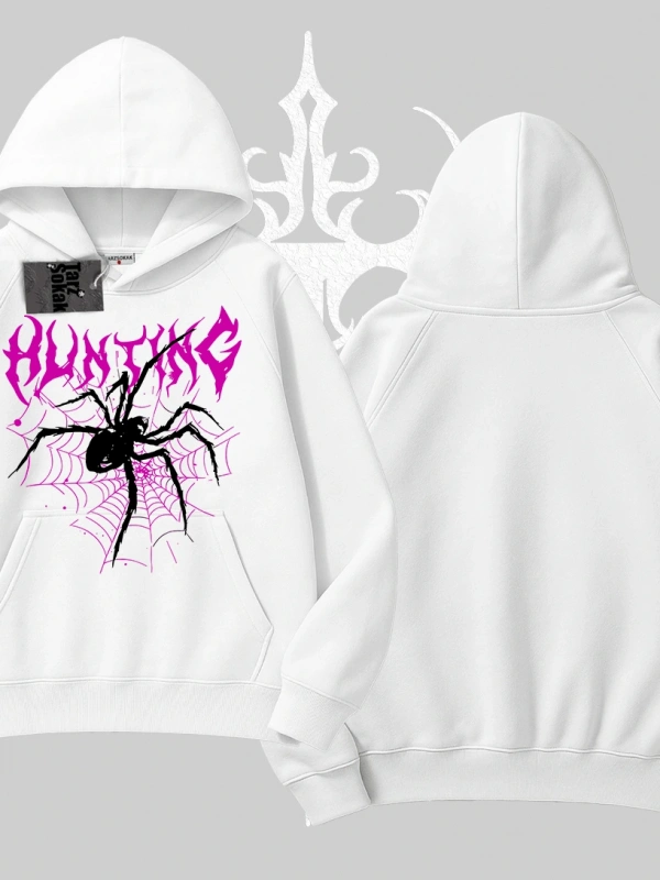 Beyaz Kapşonlu Sweatshirt Autumn Spider