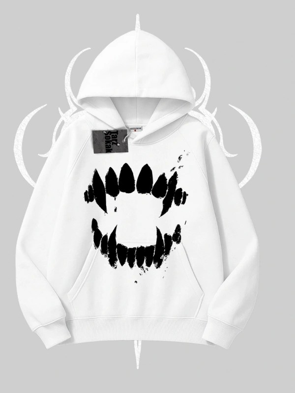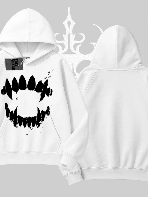 Beyaz Kapşonlu Sweatshirt Vampir Dış