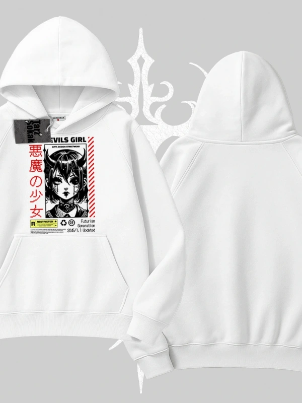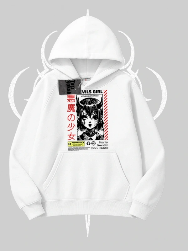 Kapşonlu Sweatshirt Anime Devils Girl Japanese Style Baskılı
