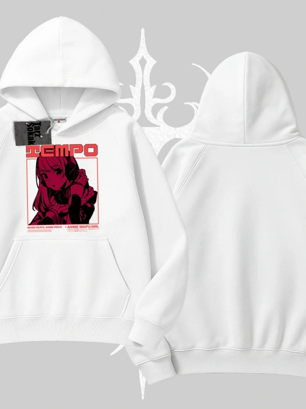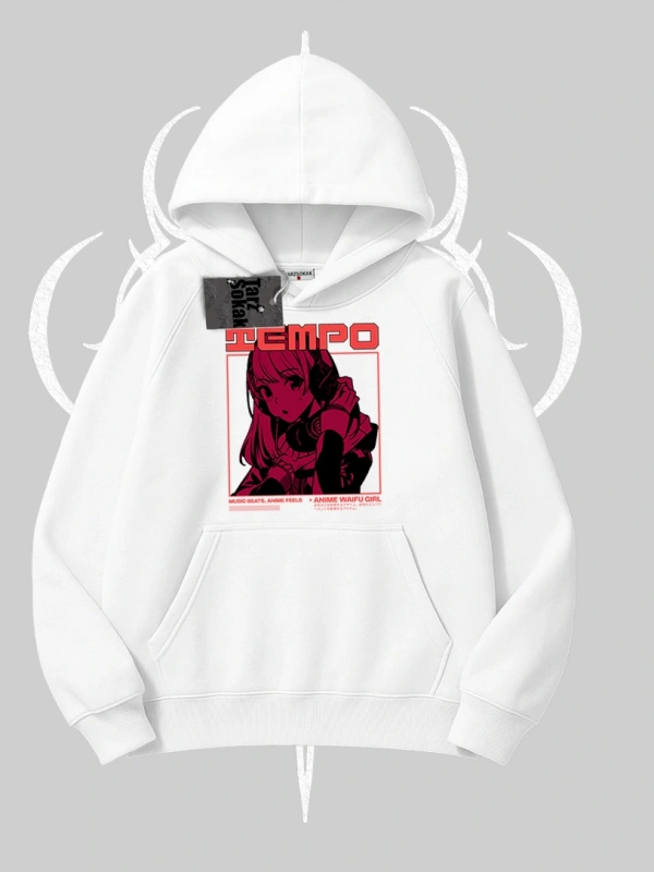 Kapşonlu Sweatshirt Anime Waifu Kırmızı Grafik Desenli