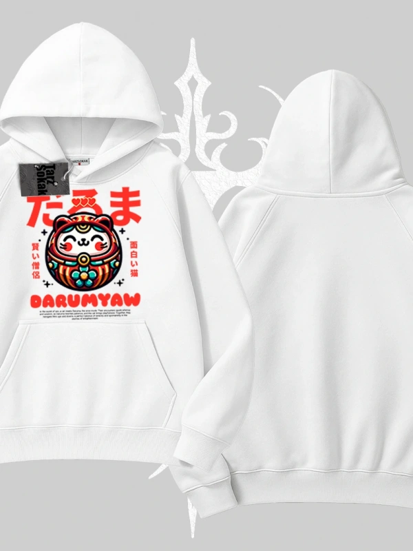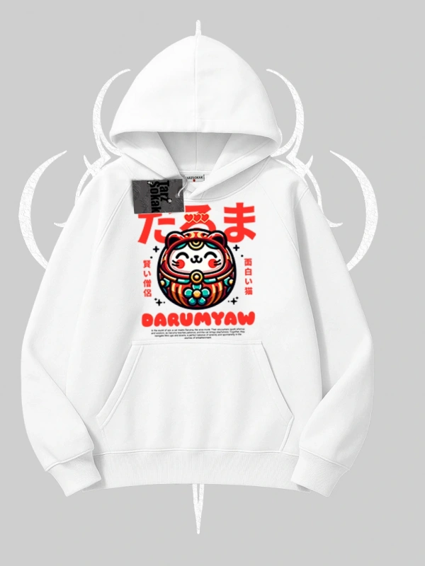 Kapşonlu Sweatshirt Daruma Kedi Anime Baskılı