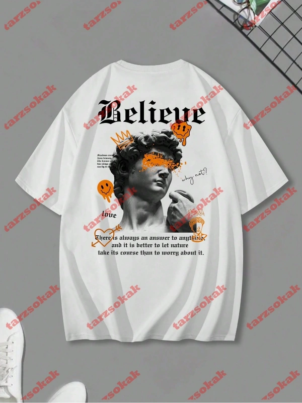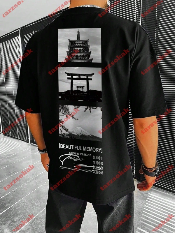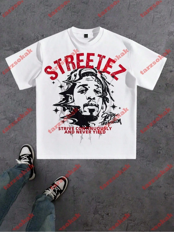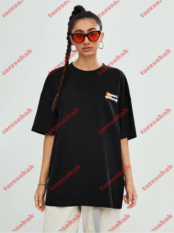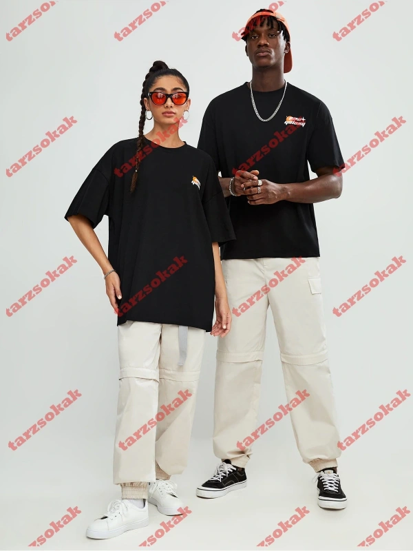 Penguen Baskılı Oversize Kalıp Unisex T-shirt