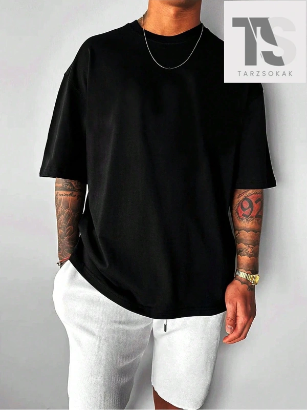 Erkek Oversize Basic Pamuklu Kısa Kollu