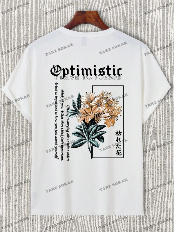 KOD Trend LEGND Erkek Çiçek & Slogan Grafikli Tişört