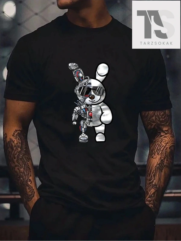 Erkek Pamuk Ayı ve Mektup Grafikli Tişört