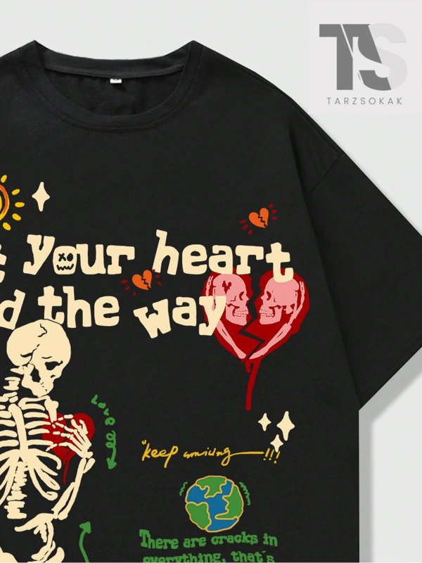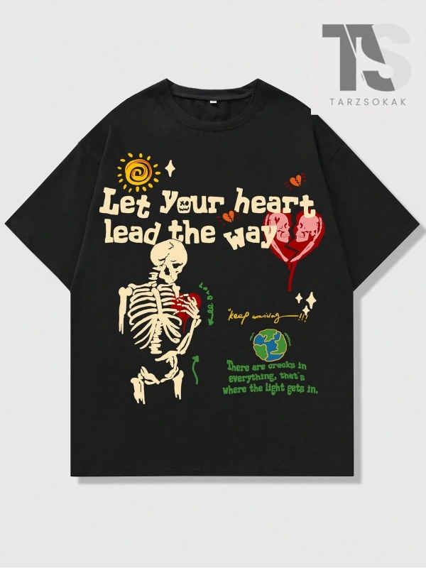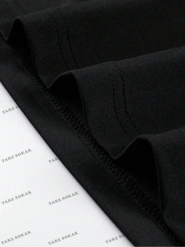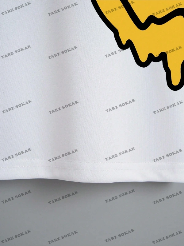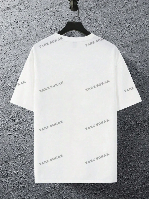 Erkek Slogan ve Şekil Grafikli Düşük Omuz Tişörtü