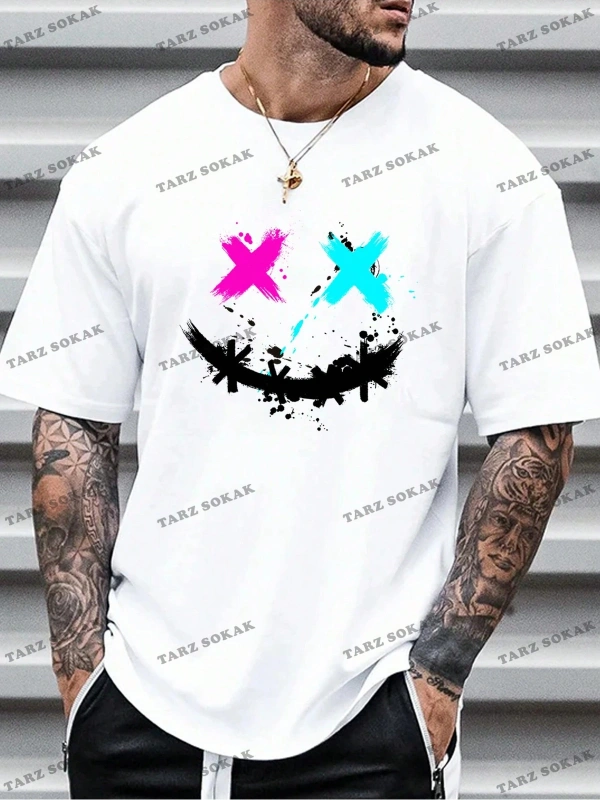 Street Life Erkek Portre Baskılı Kısa Kollu Tişört, e Yaz Aylarında Günlük Gi