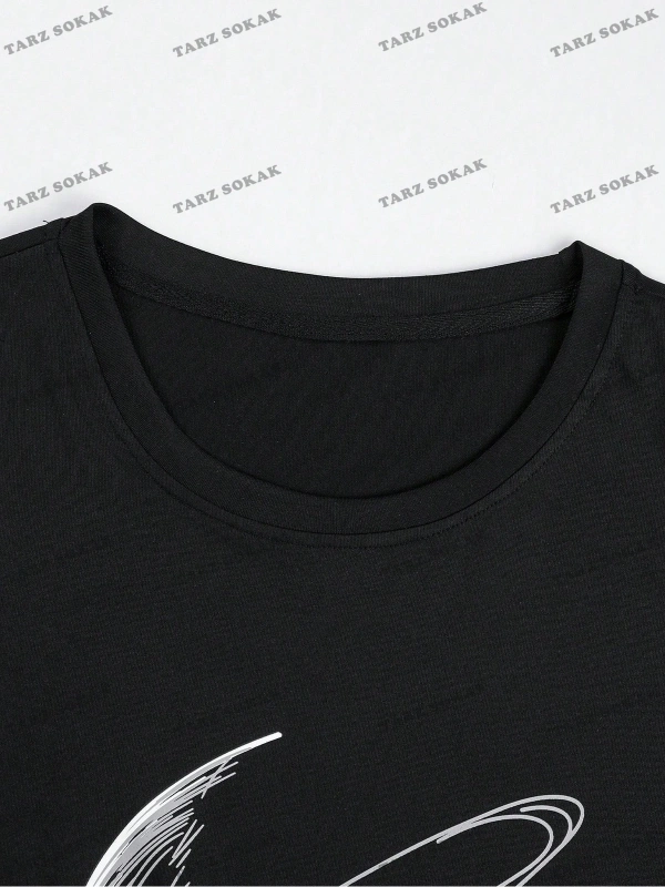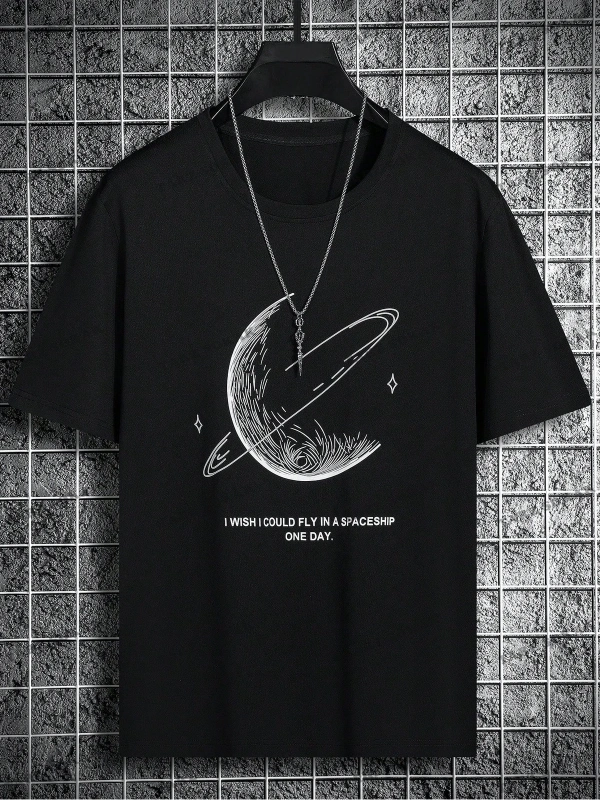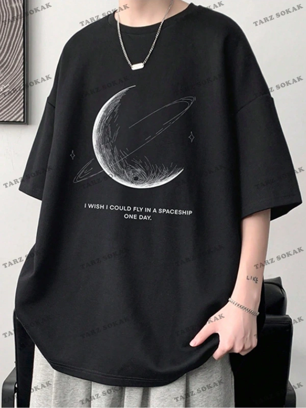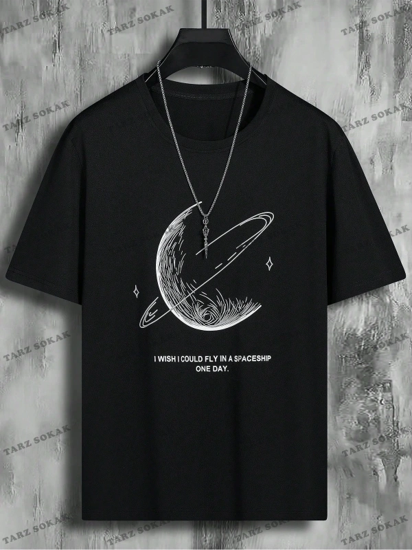 KOD Trend Hypemode Erkek Sloganı ve Gezegen Baskılı Tişört