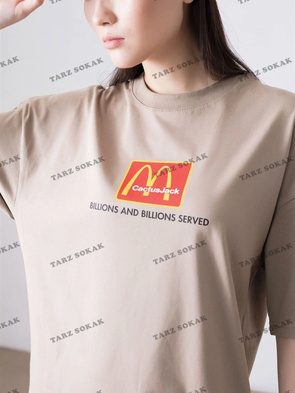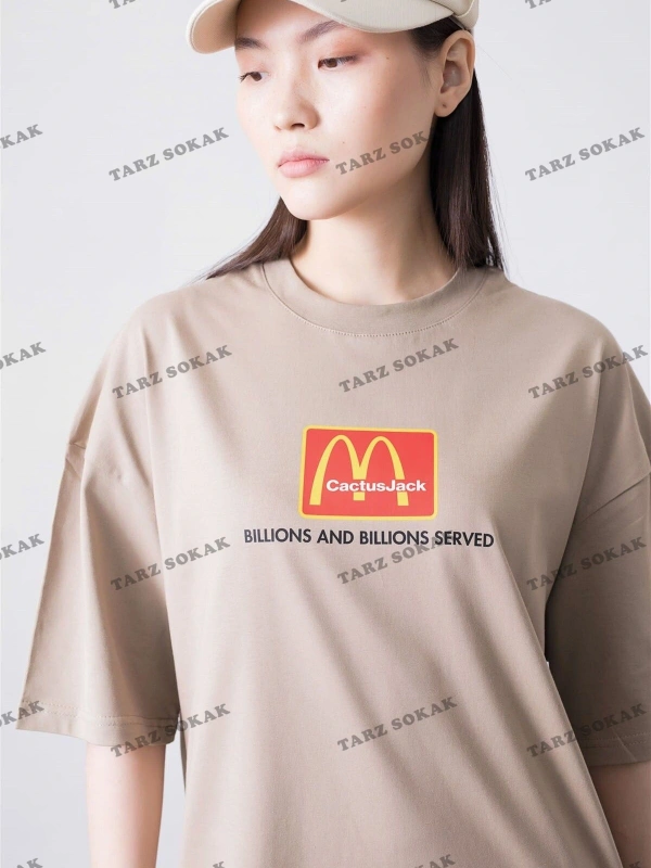 Ekru Baskılı Oversize Tişört