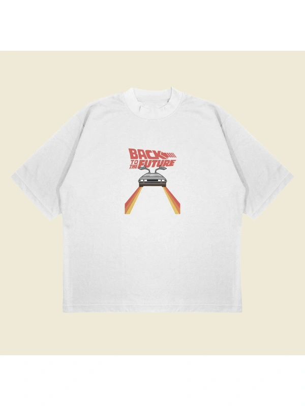 Back To The Future Baskılı Oversize Unisex Pamuklu Nefes Alan Kalın Kumaşlı
