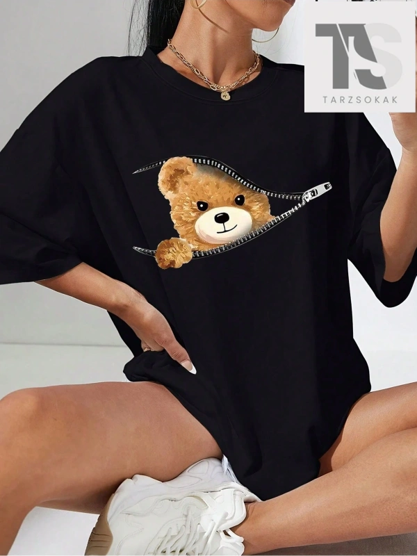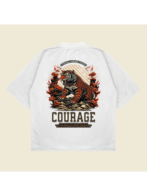 Tigercourage Baskılı Oversize Unisex Pamuklu Nefes Alan Kalın Kumaşlı