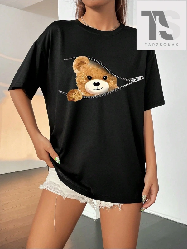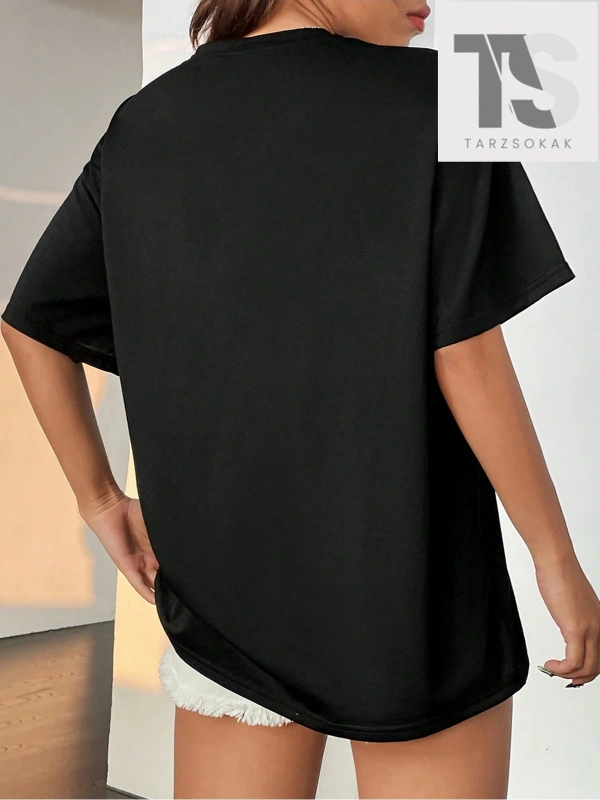 Kadın Çiçek Desenli Bol Kesim Tişört