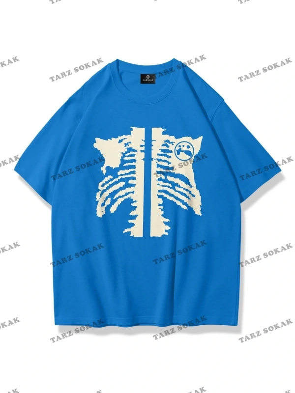 Erkek Karikatür Desenli Yuvarlak Yaka Kısa Kollu Tişört
