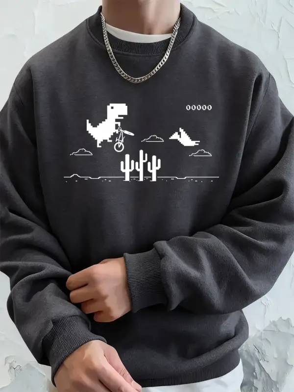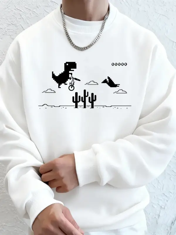 Dinozorlar Kaktüs Üzerinde Baskılı Erkek Kapüşonlu Üstü Sonbahar Bisiklet Yaka Tişörtü Temel