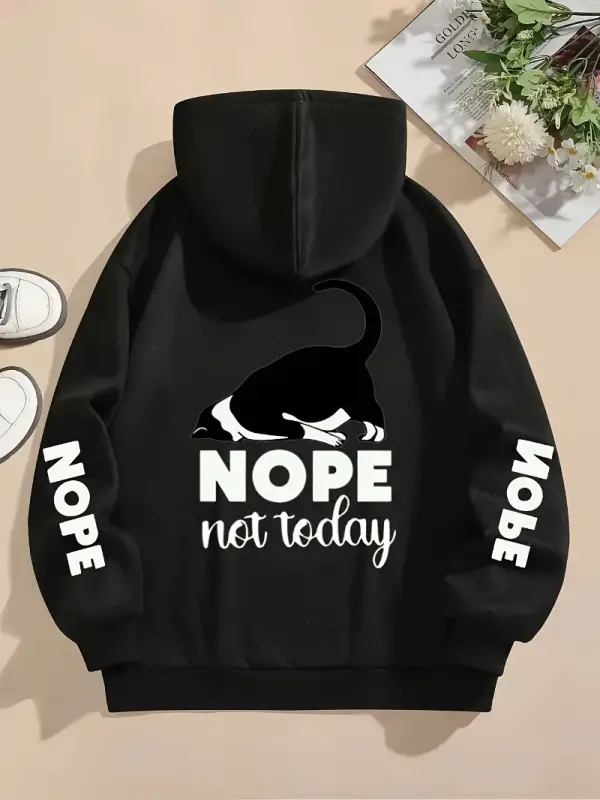 Hayır Bugün Değil Baskılar Kapüşonlular Bayan Sevimli Kedi Kazaklar Gevşek Cep Sıcak Polar Ti