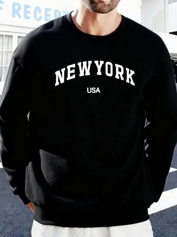 New York ABD Baskılı Erkekler İçin O-Yaka Moda Kazakları Polar Sonbahar Sweatshirt Sokak Günl