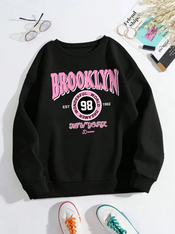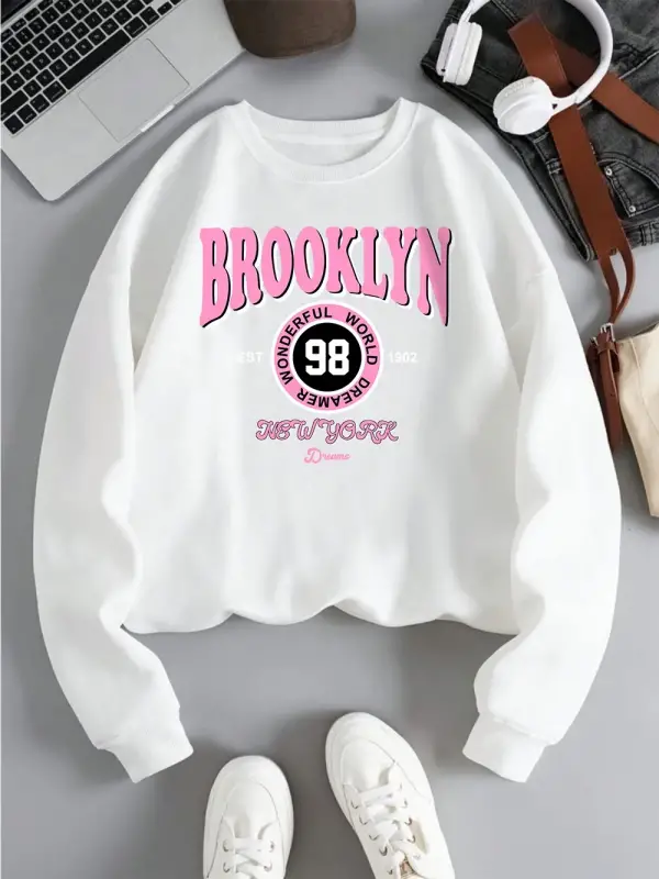 Brooklyn Dünya Hayalperest Kazak Kadın Mektup baskılı kapüşonlu svetşört Polar Sıcak Crewneck