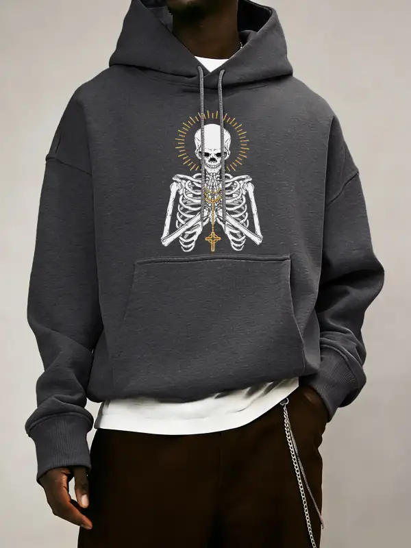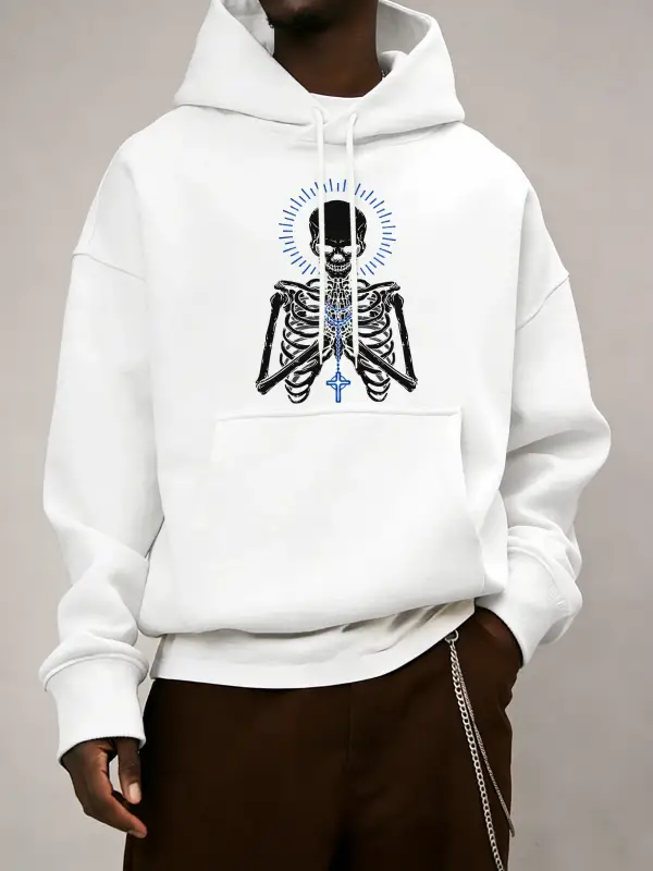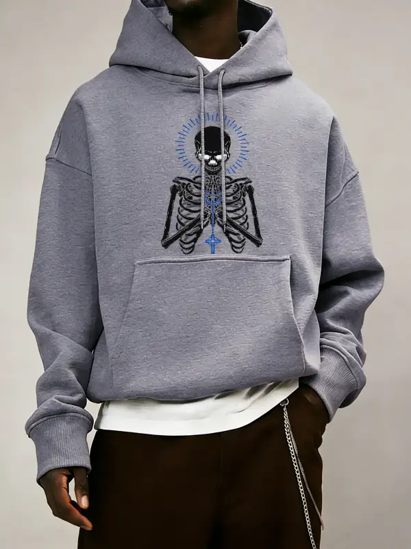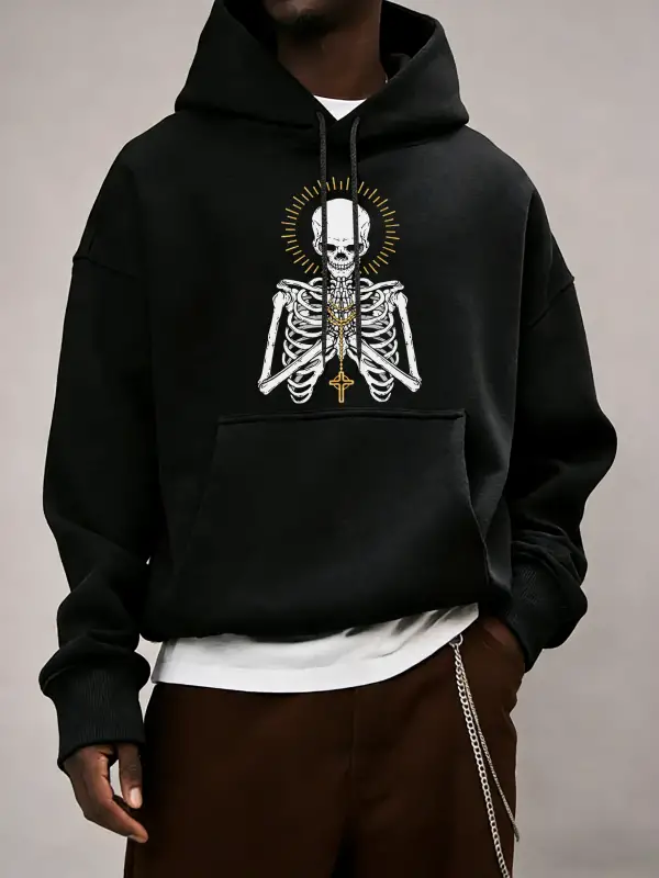 Ölüm İçin Dua Edin İskelet Baskılı Erkek Temel Kapüşonlu Ceket Cepli Moda Sweatshirt Günlük B
