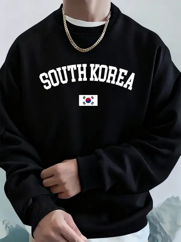 Güney Kore Bayrağı Baskılı Erkek Sweatshirtleri Kışlık Bisiklet Yaka Kapüşonlu Üstler Sokak P
