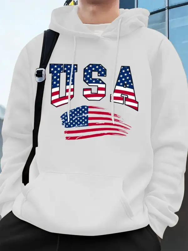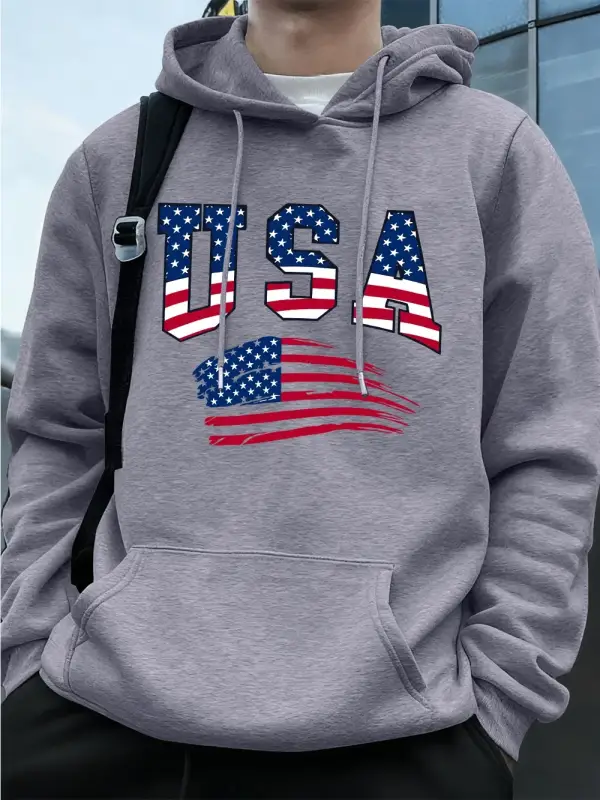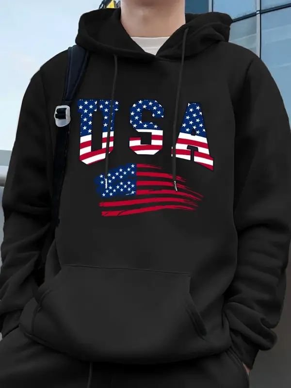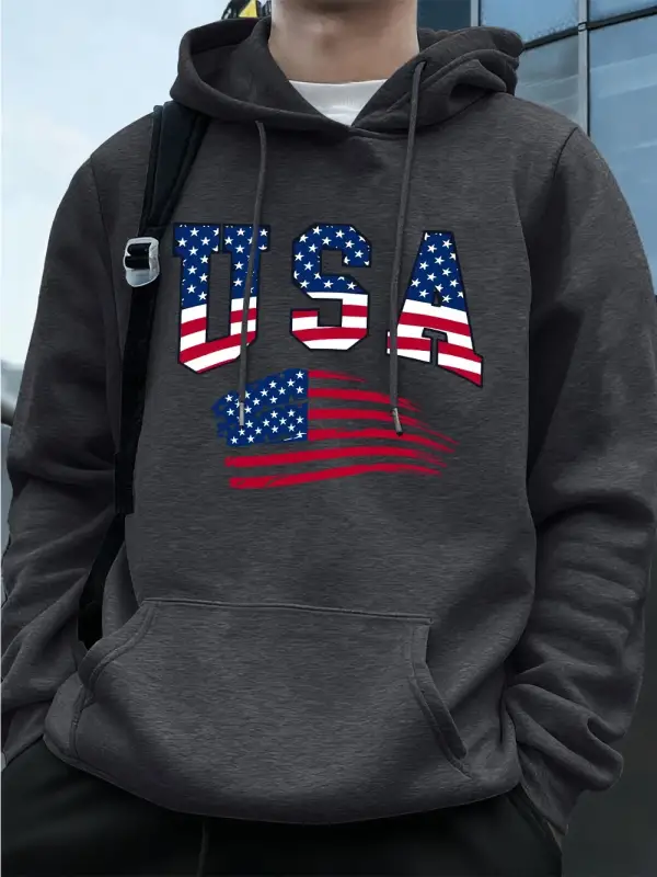 Abd Amerika Bayrağı Baskı Erkek Tişörtü Kış Polar Sıcak Kapüşonlular Temelleri Büyük Boy Cep