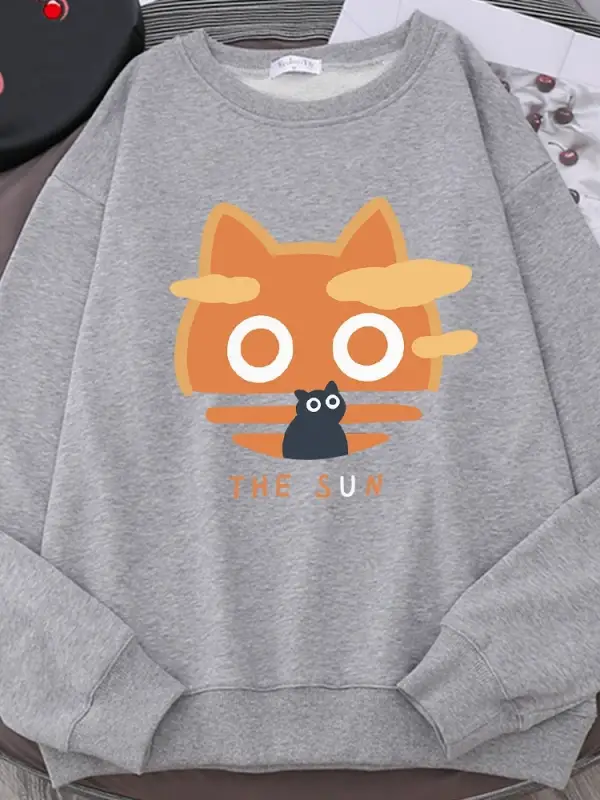 Kedi Aile Kedilerin Annesi Baskılı Eşofman Kadın Yenilik Moda Hoody Spor Gevşek Büyük Boy Hoo