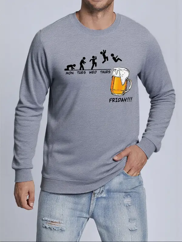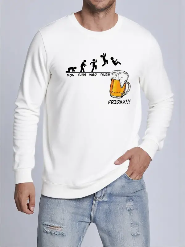 Jumping Into The Beer Friday Evolution Baskılı Üstler Erkek Yumuşak Trendy Kazak Sıcak Kalınl