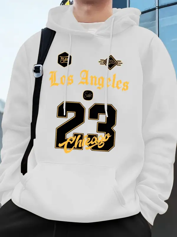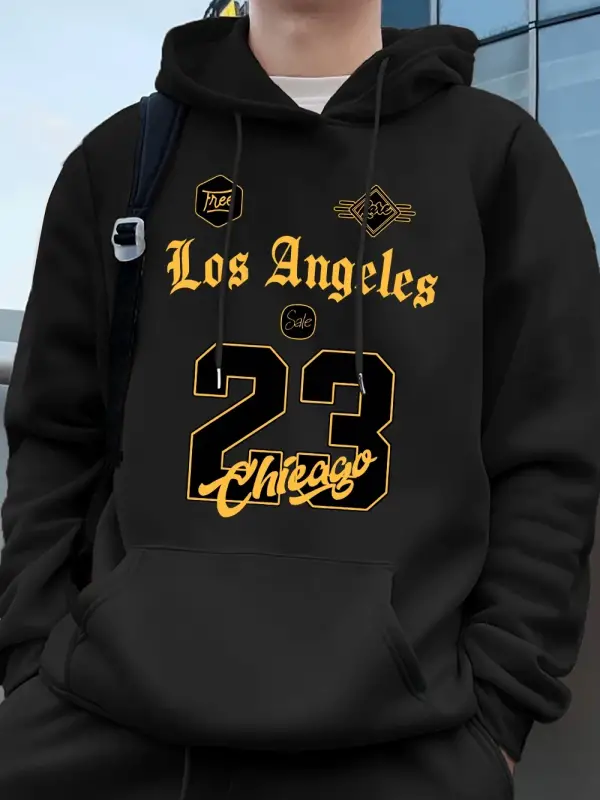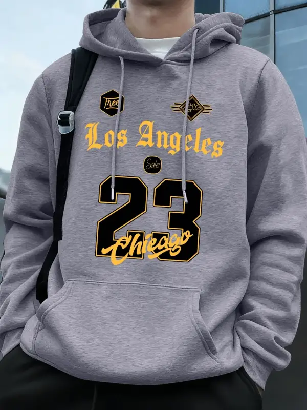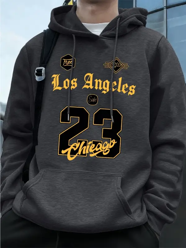 Los Angeles Chicago 23 Baskı Kapüşonlu Üst Erkek Kışlık Polar Sıcak Kazak Koşu Cepli Kazak Sp
