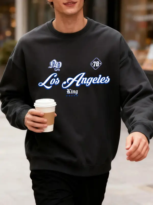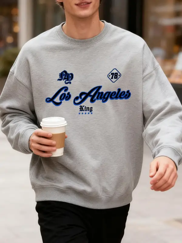 Los Angeles King Letter Creative Print Üst Giyim Bol Kesim Oversize Sweatshirt Jogging Modası
