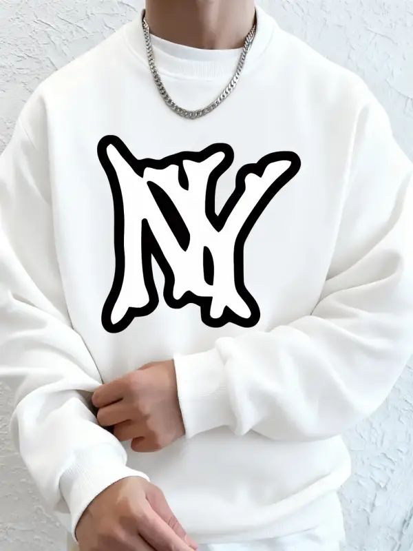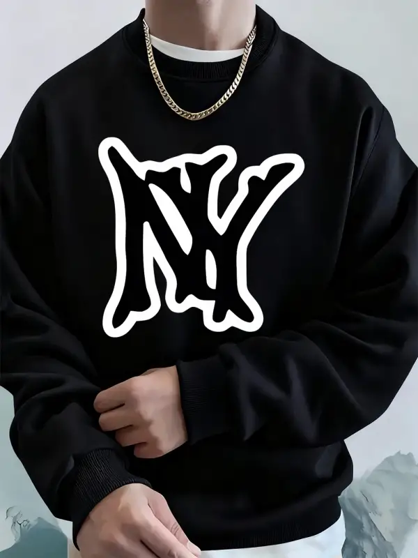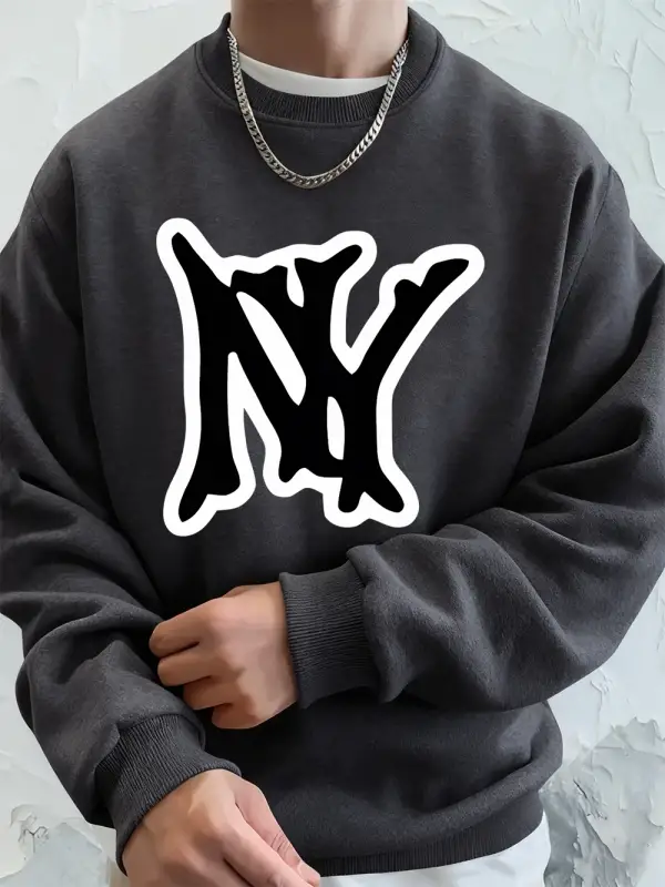 Basit Ny Logo Baskı Erkek Tişörtü Kış Polar Sıcak Kapüşonlular Kore Büyük Boy Bisiklet Yaka S