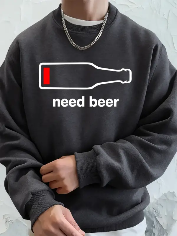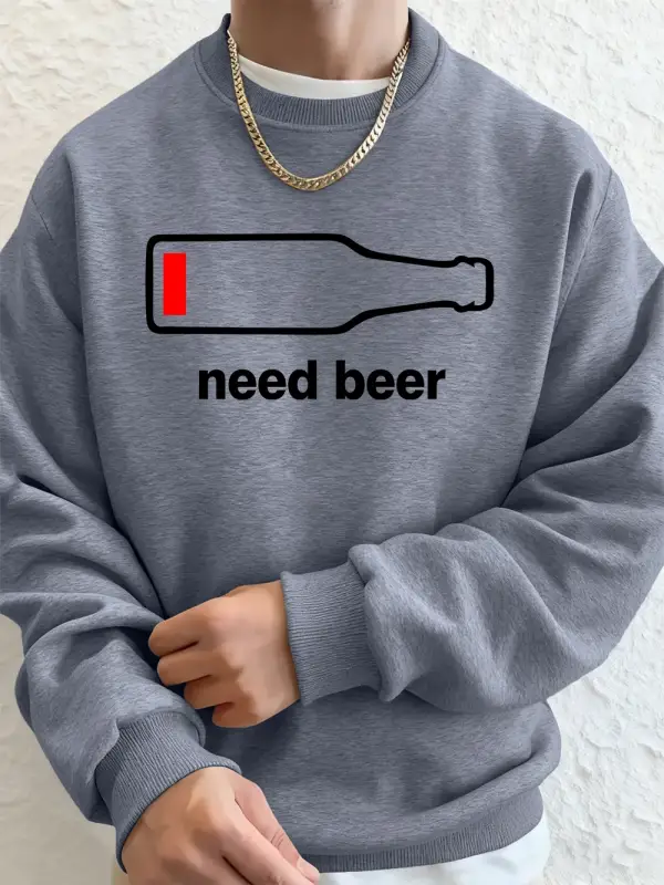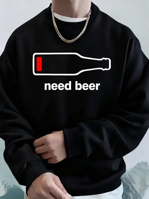 Bira İstiyorum Komik Baskılı Erkek Sweatshirtleri Kışlık Yuvarlak Yaka Kapüşonlu Üstler Sokak
