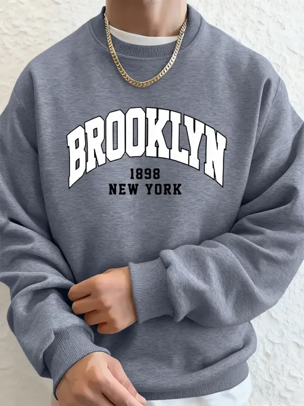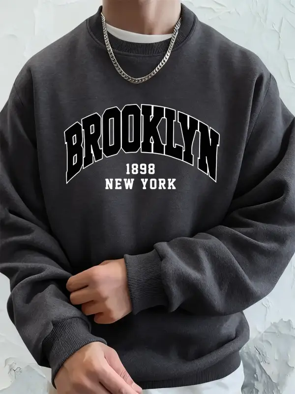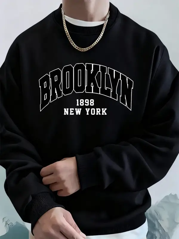 Brooklyn 1898 New York Prints Erkek Kapüşonlu Üst Sonbahar Bisiklet Yaka Tişörtü Temel Polar