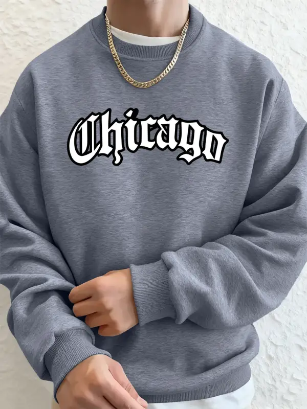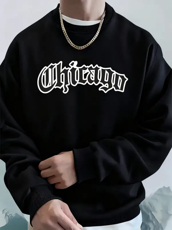 Chicago Letter Baskılı Erkek Sweatshirtleri Kışlık Bisiklet Yaka Kapüşonlu Sokak Stili Polar