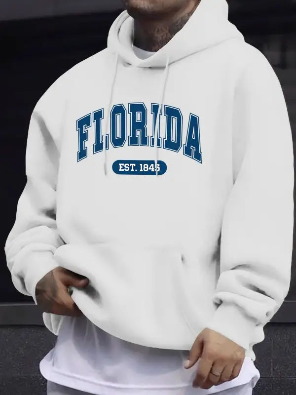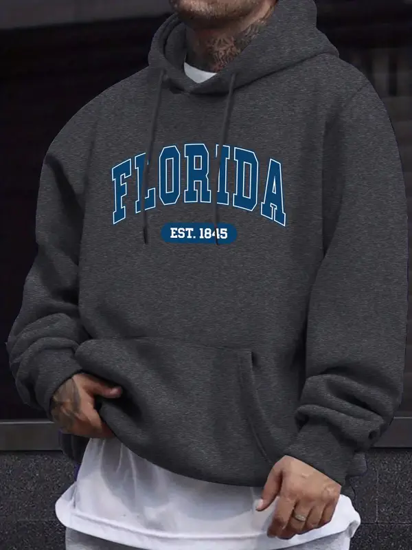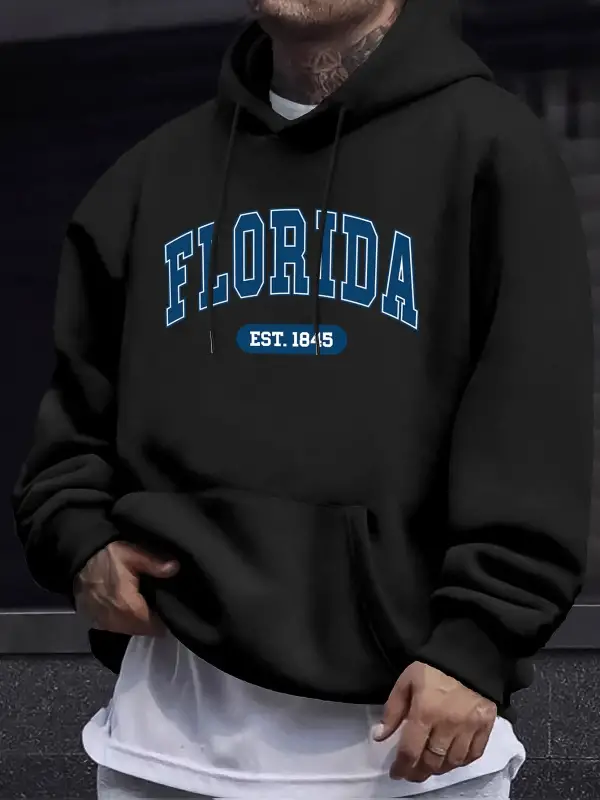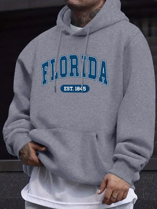 Florida Est 1845 Mektup Yaratıcı Baskı Erkek Polar Giyim Sonbahar Günlük Eşofman Temel Spor K