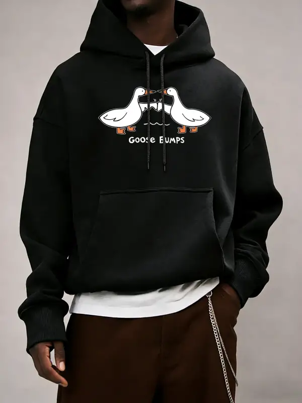 Good Bumps Ducks Baskılı Erkekler Sonbahar Kapüşonlular Cep Trendy Tişörtü Rahat Hip Hop Uzun