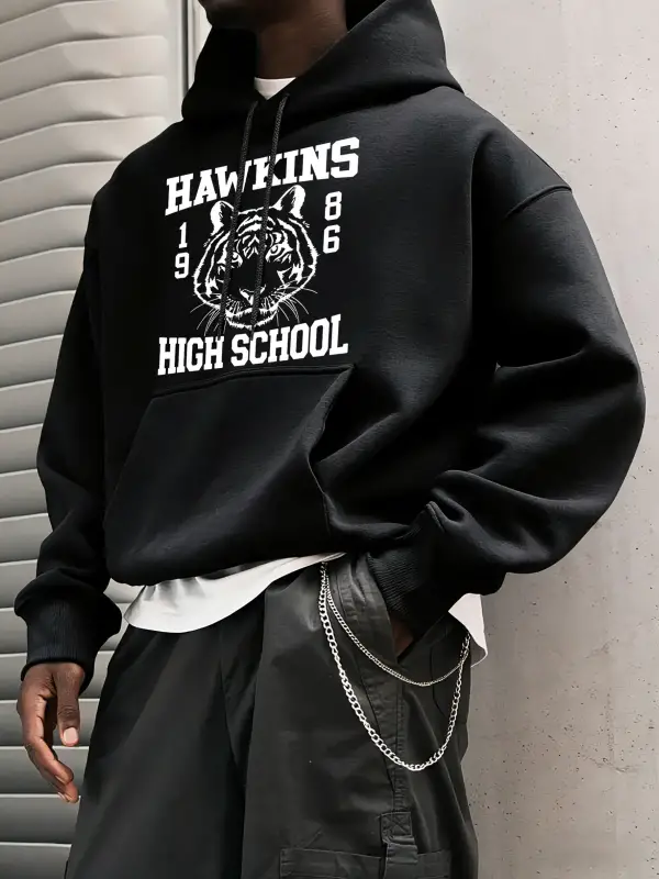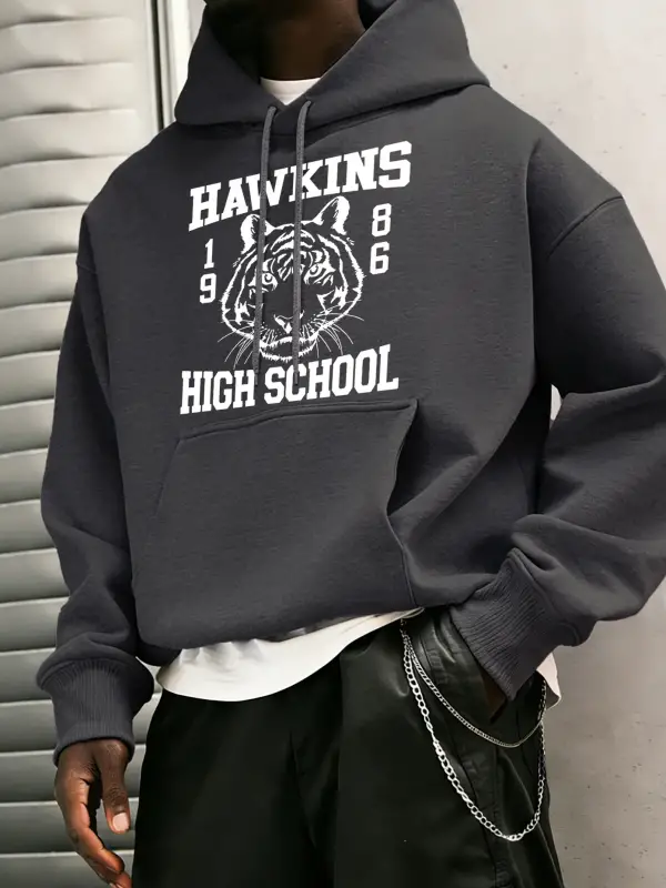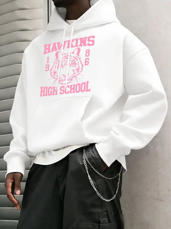 Hawkins Lisesi 1986 Desen Erkekler Temel Kapüşonlular Cep Vintage Üstler Günlük Moda Uzun Kol