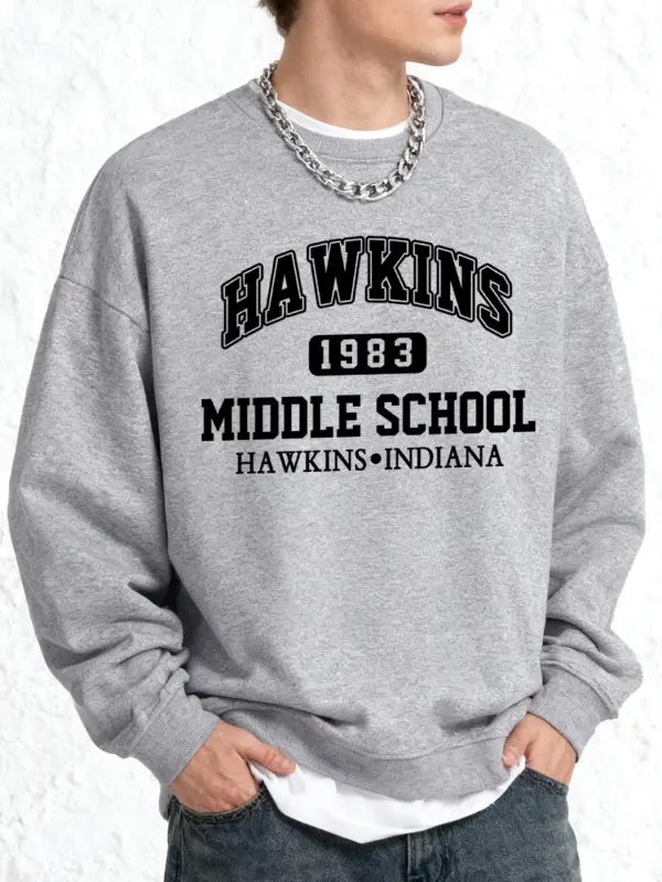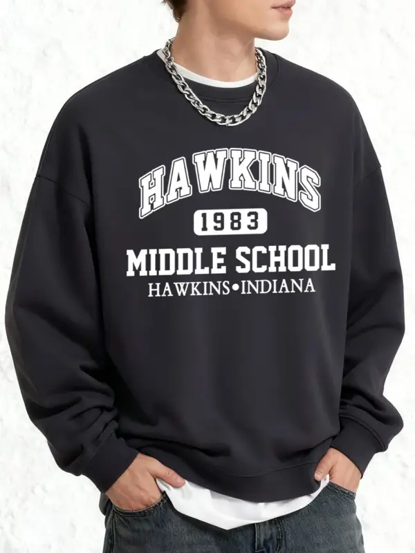 Hawkins Ortaokul Erkekler İçin Baskılı Sweatshirt Oversize Kazak Sonbahar Sıcak O-Yaka Spor G