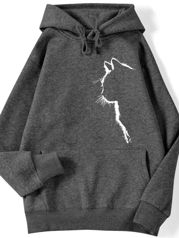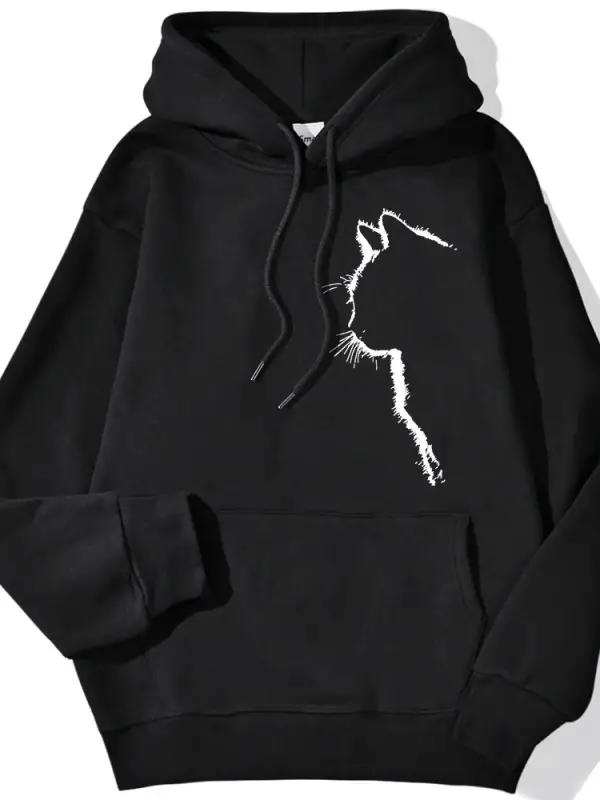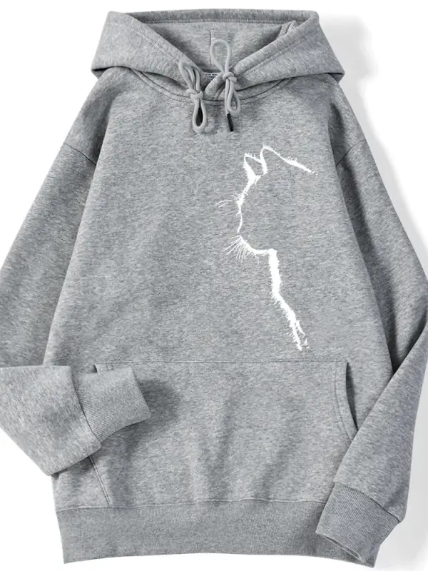Rahat kadın Kazak Basit Vuruş Kedi baskılı kapüşonlu svetşört Damla Kollu Gevşek Streç Sıcak