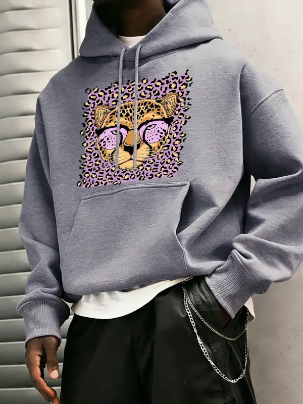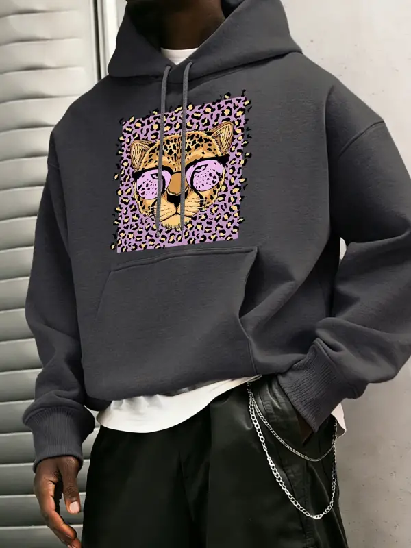 Yaratıcı Mor Leopar Baskılı Kapüşonlular Erkekler Rahat Genç Giysiler Gevşek Sonbahar Sokak Ş