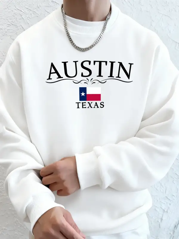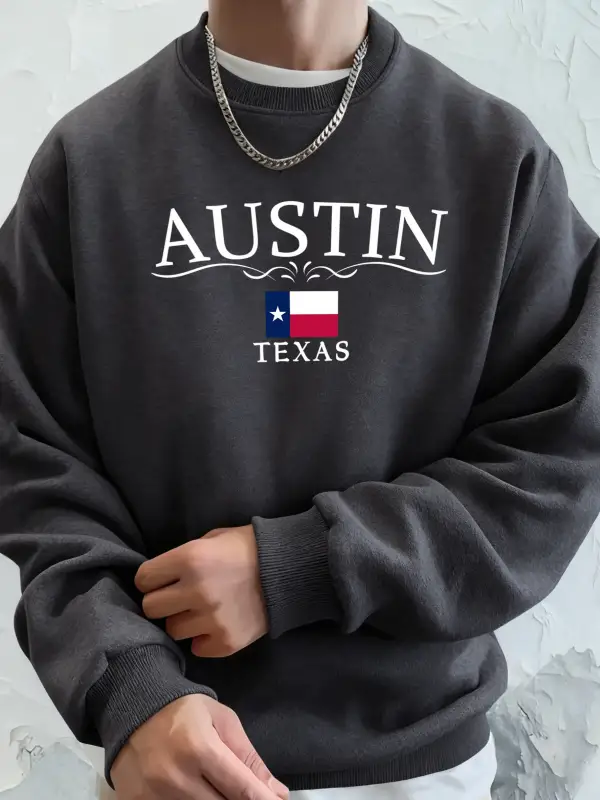 Austin Texas Mektup Baskılı Unisex Cepli Giysiler Basit Spor Sweatshirtler Polar Sonbahar Kap