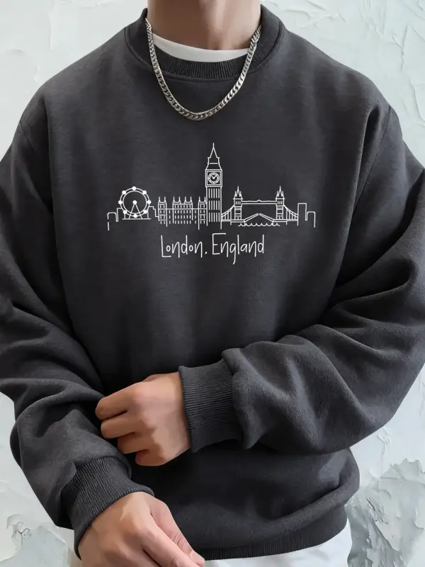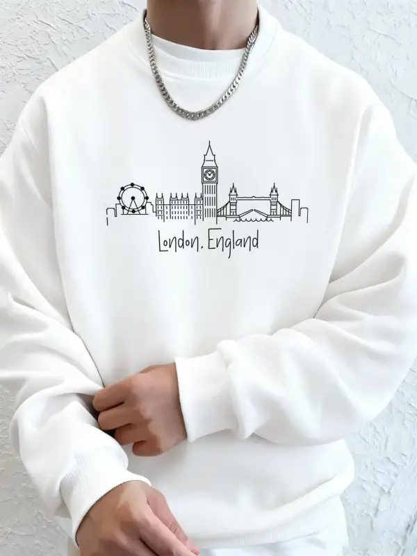 Londra İngiltere Mektup Sadelik Baskı Erkekler Kapşonlu Rahat Yumuşak Tişörtü Moda Temel Giys