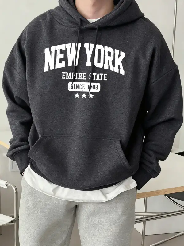 New York Empire State 1788'den Bu Yana Desen Erkek Sonbahar Günlük Kapüşonlular Moda Spor Kaz
