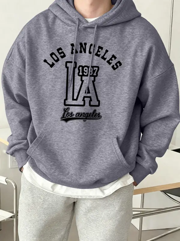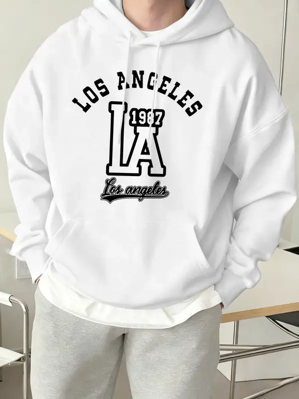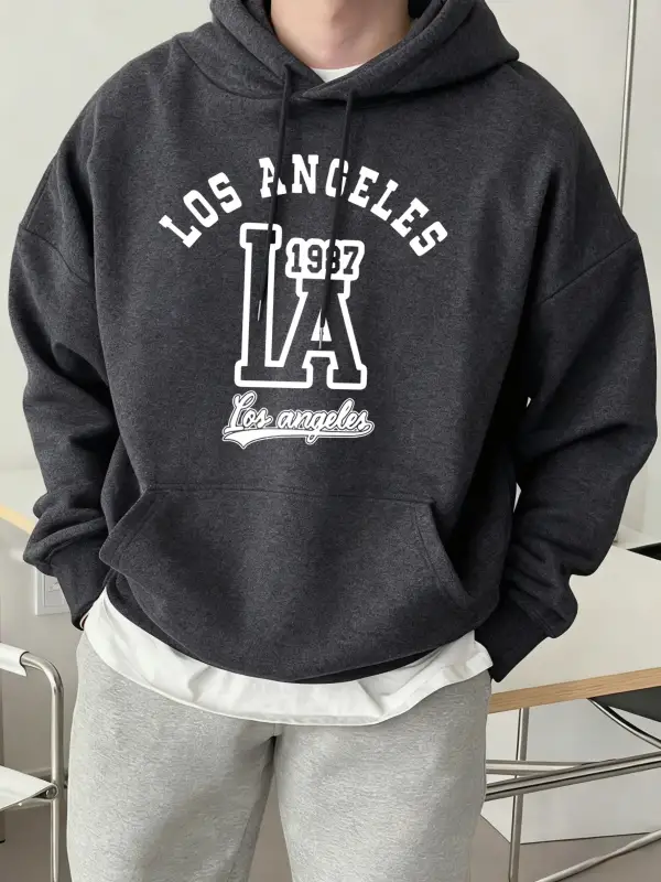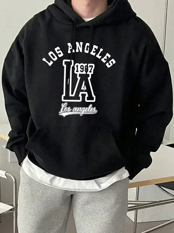 Los Angeles Mektup Baskılı Kapüşonlu Üstler Erkek Polar Sokak Modası Sweatshirtleri Sonbahar