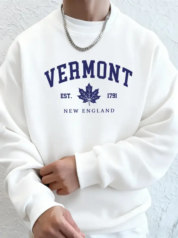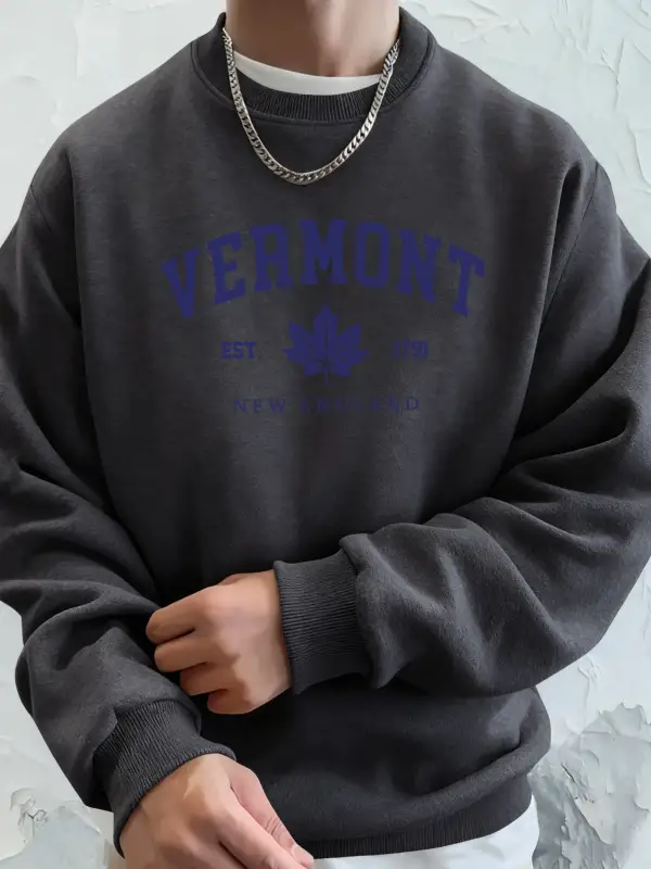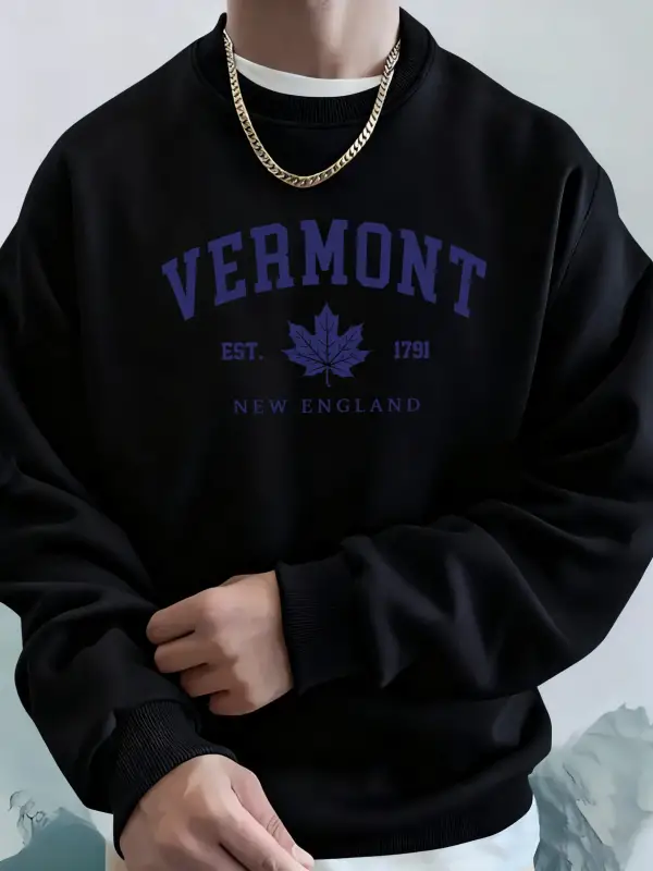 Vermont New England Est 1791 Baskılı Kapüşonlular Erkek Yumuşak Polar Eşofman Rahat Sonbahar