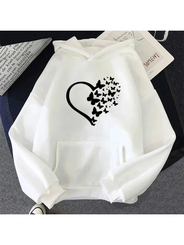 Beyaz Unisex Gül Humbe baskı rahat için kışsonbahar Streetwear Hip Hopse